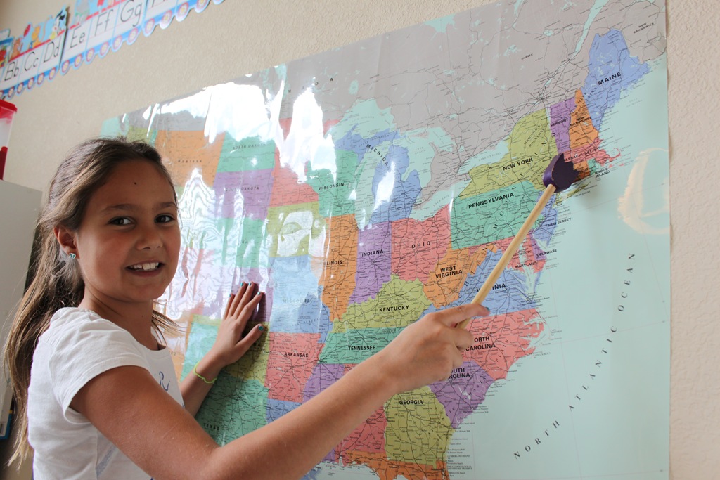 We are also studying the USA this year. I love your map where you velcro the states on. I was thinking to create one like yours? Did you buy two maps and then cut out the states and add the velcro? This would be much more hands on. Also where did you find your pointer? I keep looking for one, but find mostly plastic ones.