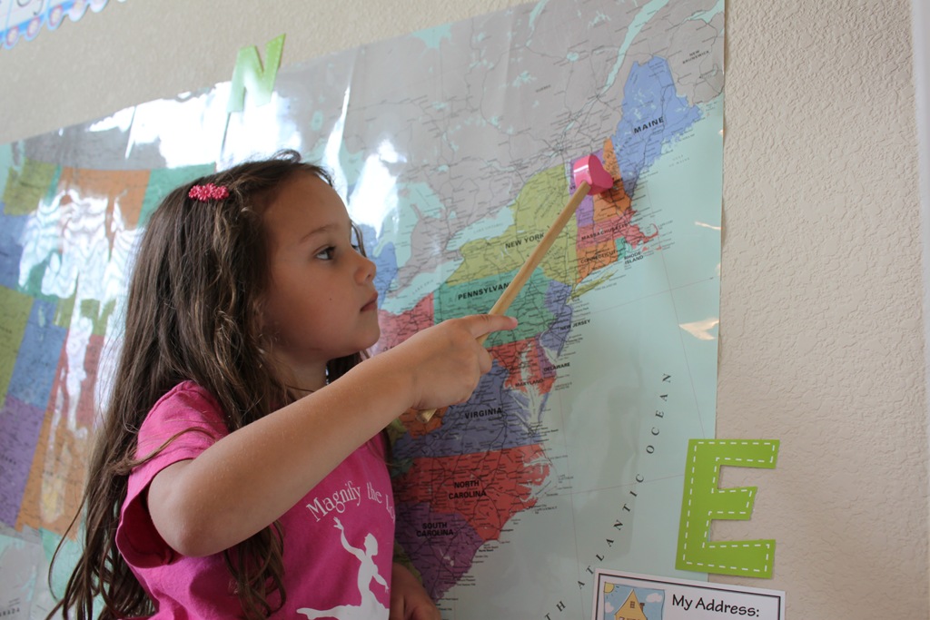 After reviewing all of the states we’ve learned so far, we located New Hampshire and Concord on our wall map.