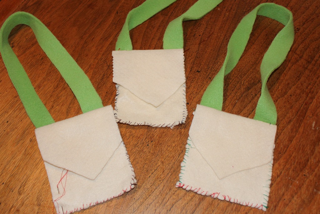 We read Revolutionary War Days and decided to make a Hunter’s Bag. They were used to carry ammunition for young hunters. In frontier days bags were usually made of buckskin, we used felt ;o)