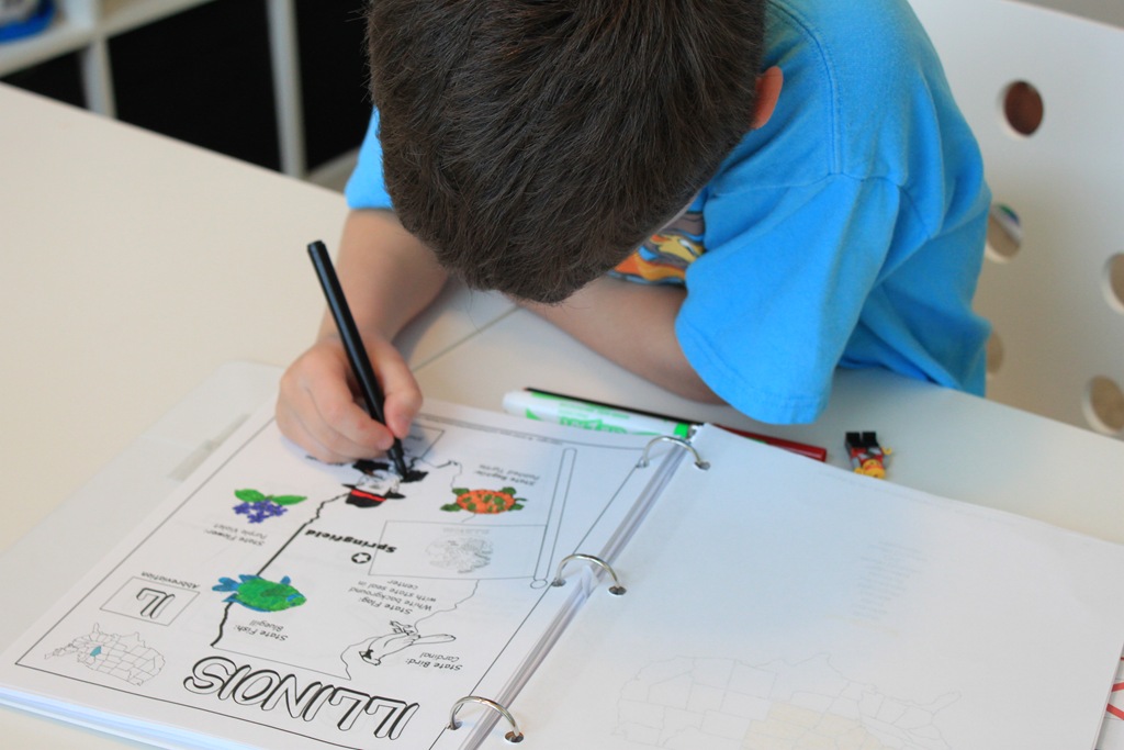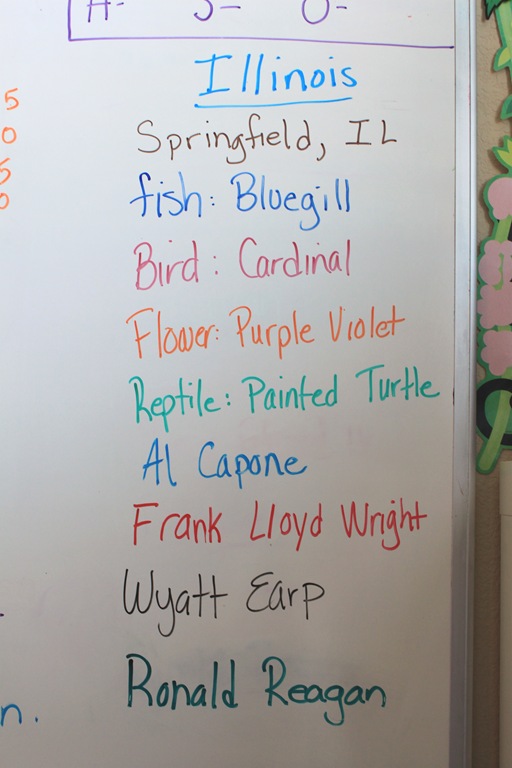 We started off by learning all about Illinois and coloring in our state worksheet.