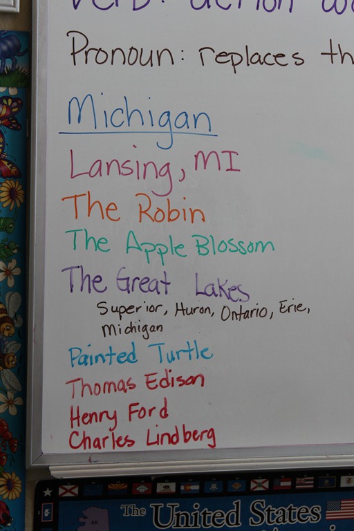 Since Michigan is at the heart of the Great Lakes, we learned about Lake Superior, Lake Michigan, Lake Huron, Lake Ontario, and Lake Erie.
