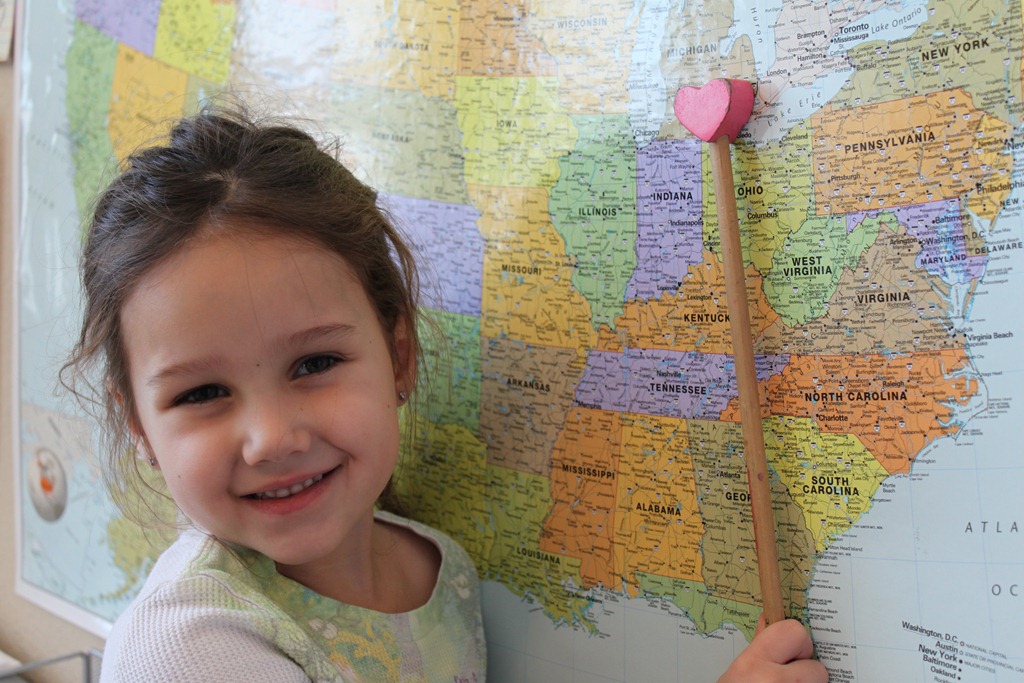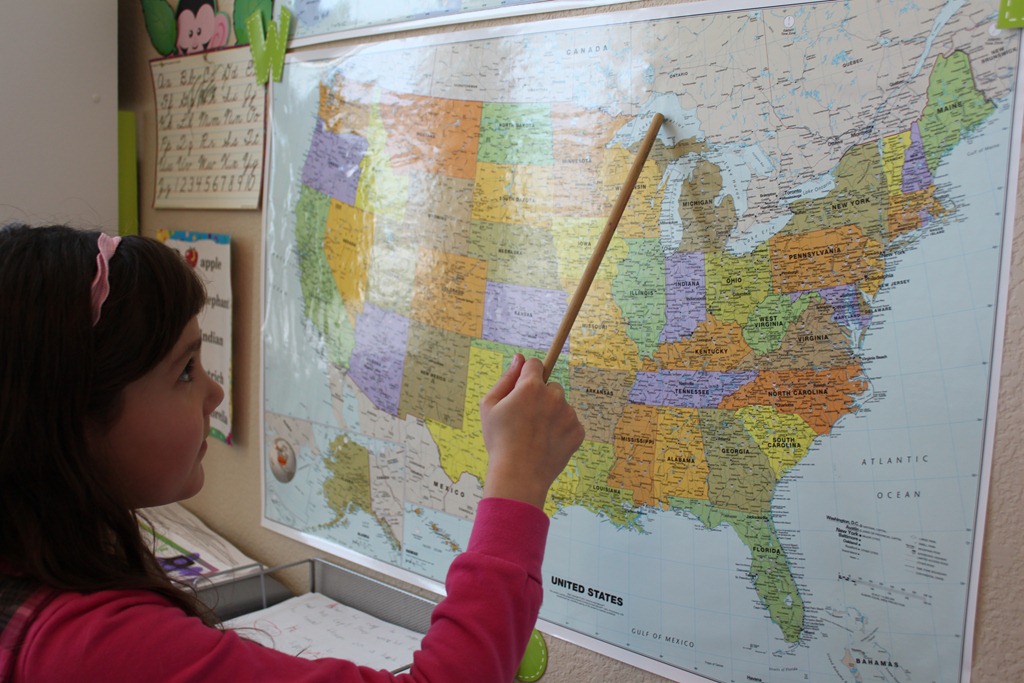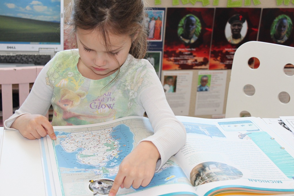 We took turns locating Lansing, Michigan in our National Geographic Atlas.