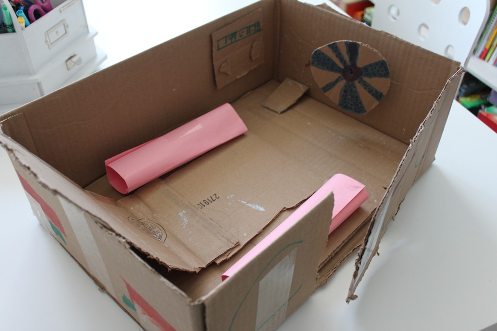 Turbo and Strawberry Shortcake came up with a play car for the Teeny Tot. It came complete with a seat, door, steering wheel, dashboard, foot petal, front and rear lights, and arm rests. All in all, I was quite impressed with the detail! And you probably can’t tell from the photo, but it really is big enough for her to sit in!