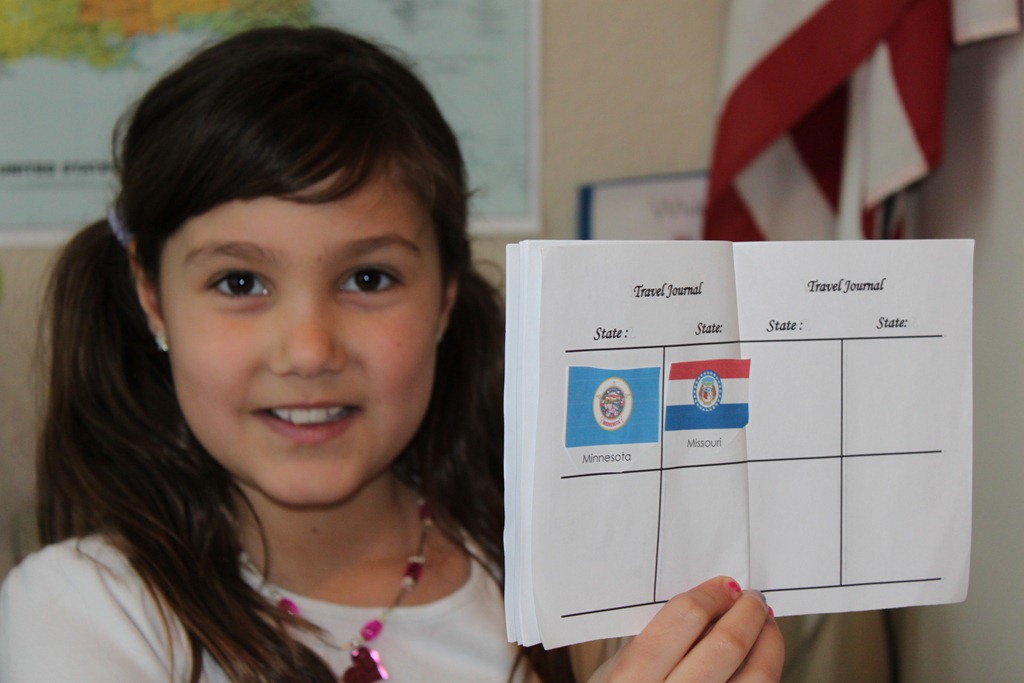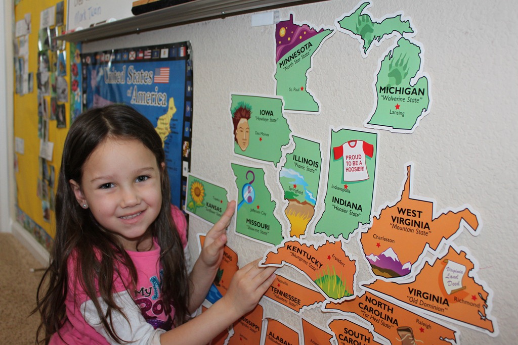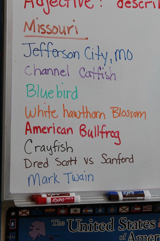 We also added Missouri to our state bulletin display. Then Tinker Bell was in charge of running a quick review session of the states that have been added up to this point.