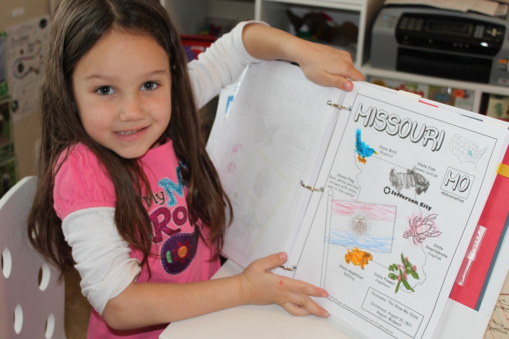The kids colored in their state worksheets as we went through all of the state facts. We also use these sheets when we do our review and mini-books for each state.