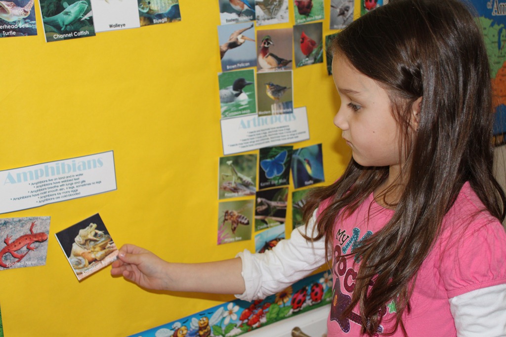 The kids took turns adding the Channel Catfish, American Bullfrog, the Bluebird, and the Crayfish to our animal wall. You can download the free United States Animal supplement here.