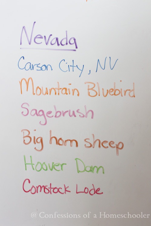 We read through all of the fun facts on Nevada from our Which Way USA Highlights Subscription. If you can, this is a really fun United States subscription. The magazines have fun games, and the fold out you see below has pictures with lots of fun facts along with a full sized map of the state on the other side.