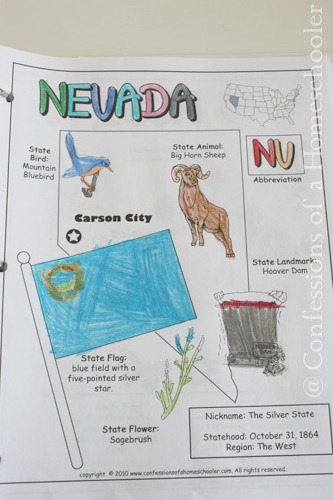 They all completed their state worksheets as we read through all of the Nevada state facts in our curriculum: