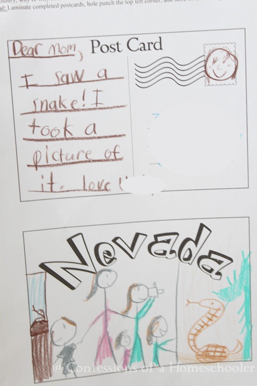 We made designed a postcard from Nevada, and wrote a fictitious letter to a friend. Sorry for the gray boxes on the back side of the post card, but Strawberry Shortcake’s fictitious letter used her real name and address LOL!